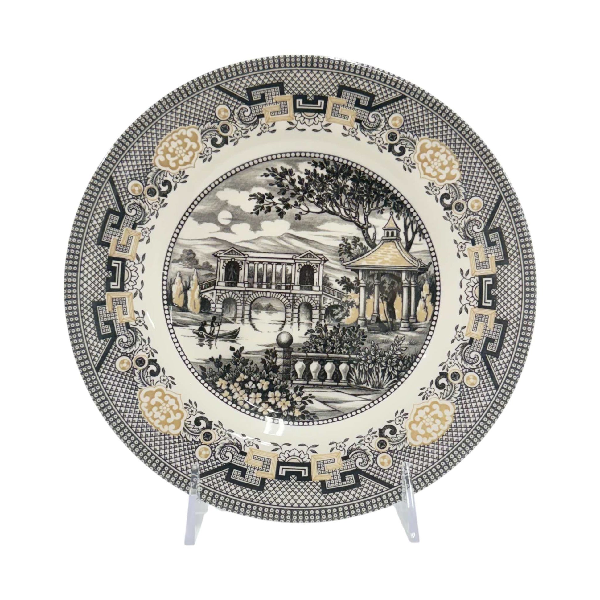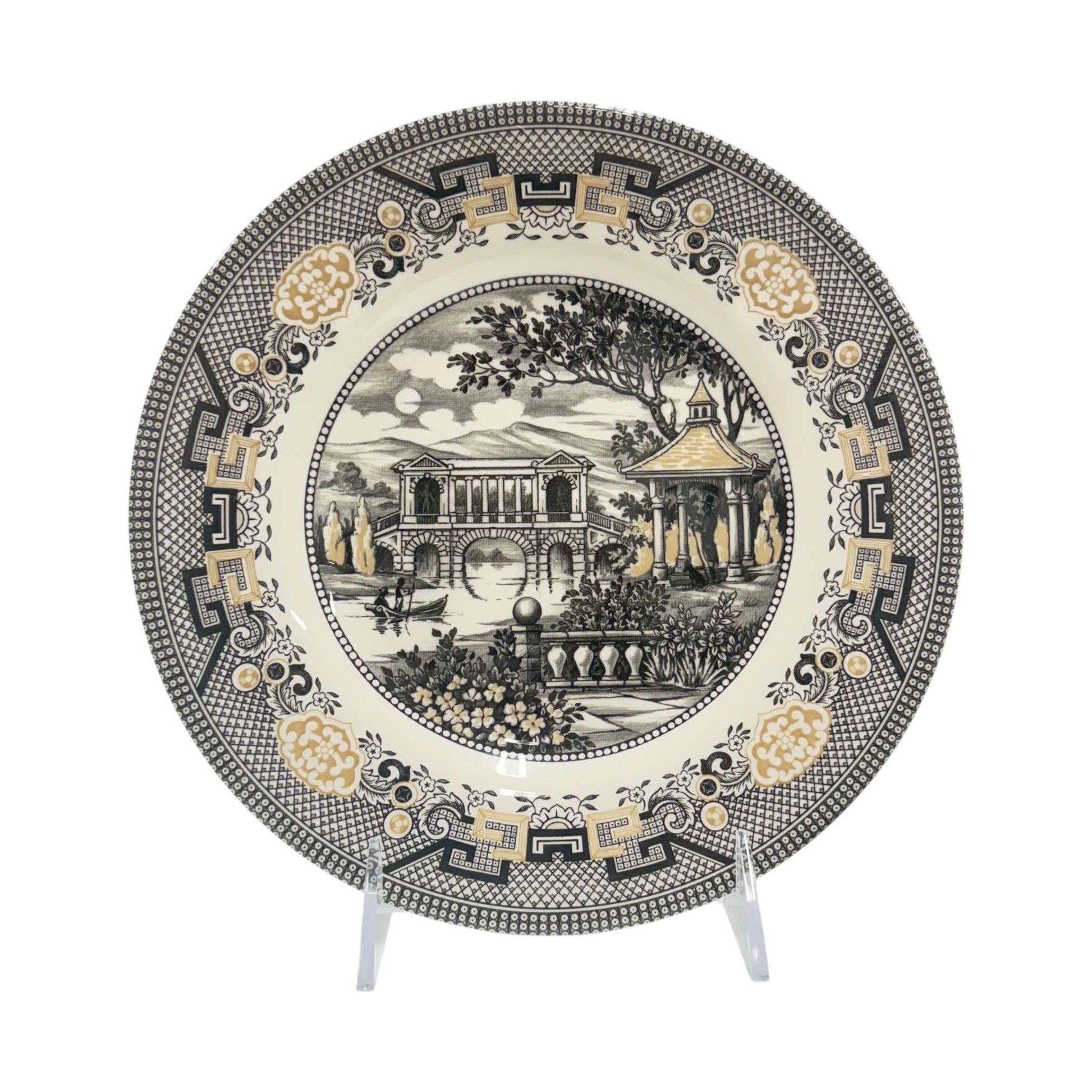 Elevate your dining experience with this set of 4 vintage-inspired Royal Stafford Willow salad plates. Featuring a timeless black and gold color palette and the iconic Willow pattern, these plates blend classic charm with refined sophistication—perfect for everyday dining or elegant dinner parties.