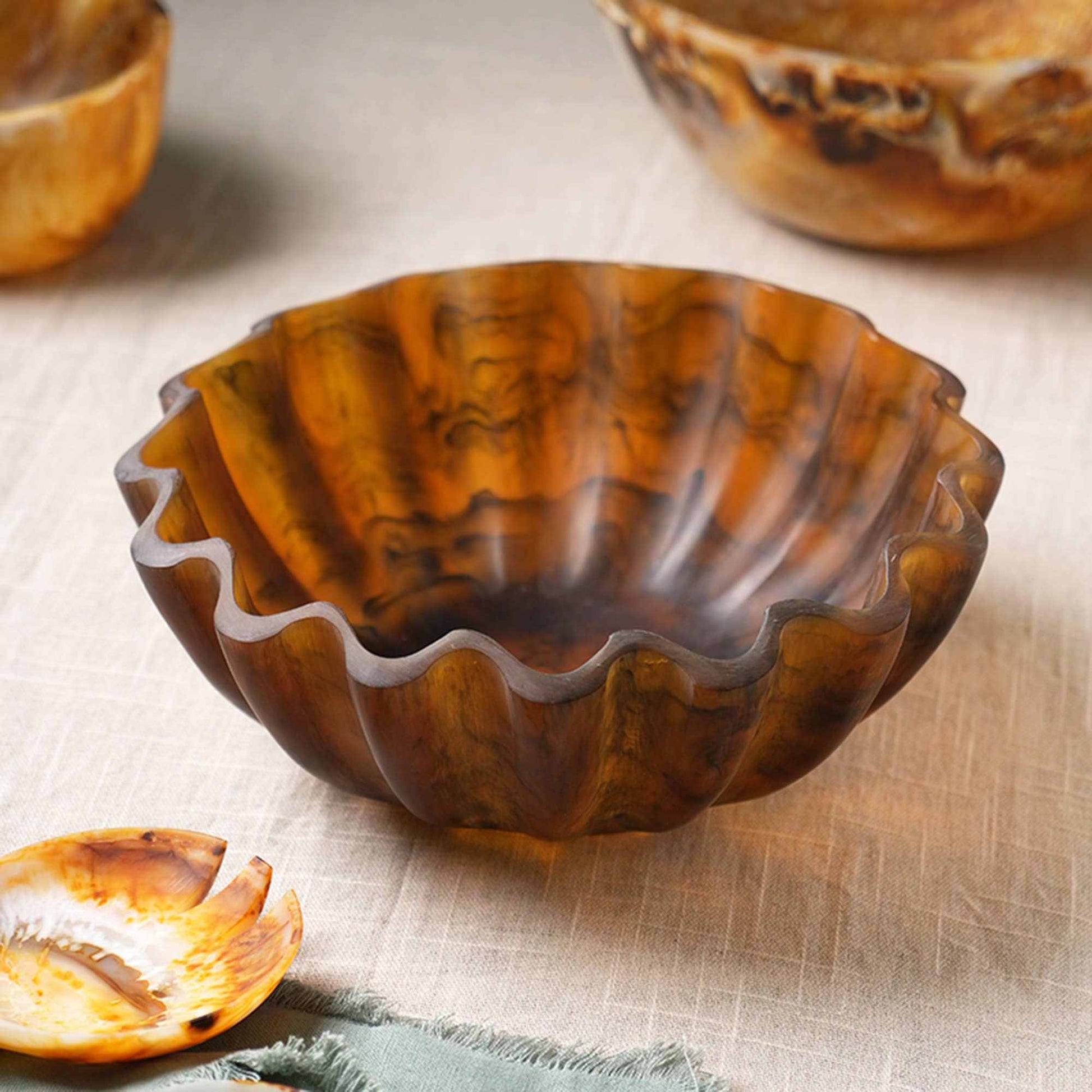 Introducing our Salad Bowl, a stunning center piece for your table. Crafted with high-quality resin, this polished finished bowl features a vibrant brown color and unique ball feet design, adding a touch of elegance to any decor. Perfect for serving fruits, salads, or displaying decorative items with style.